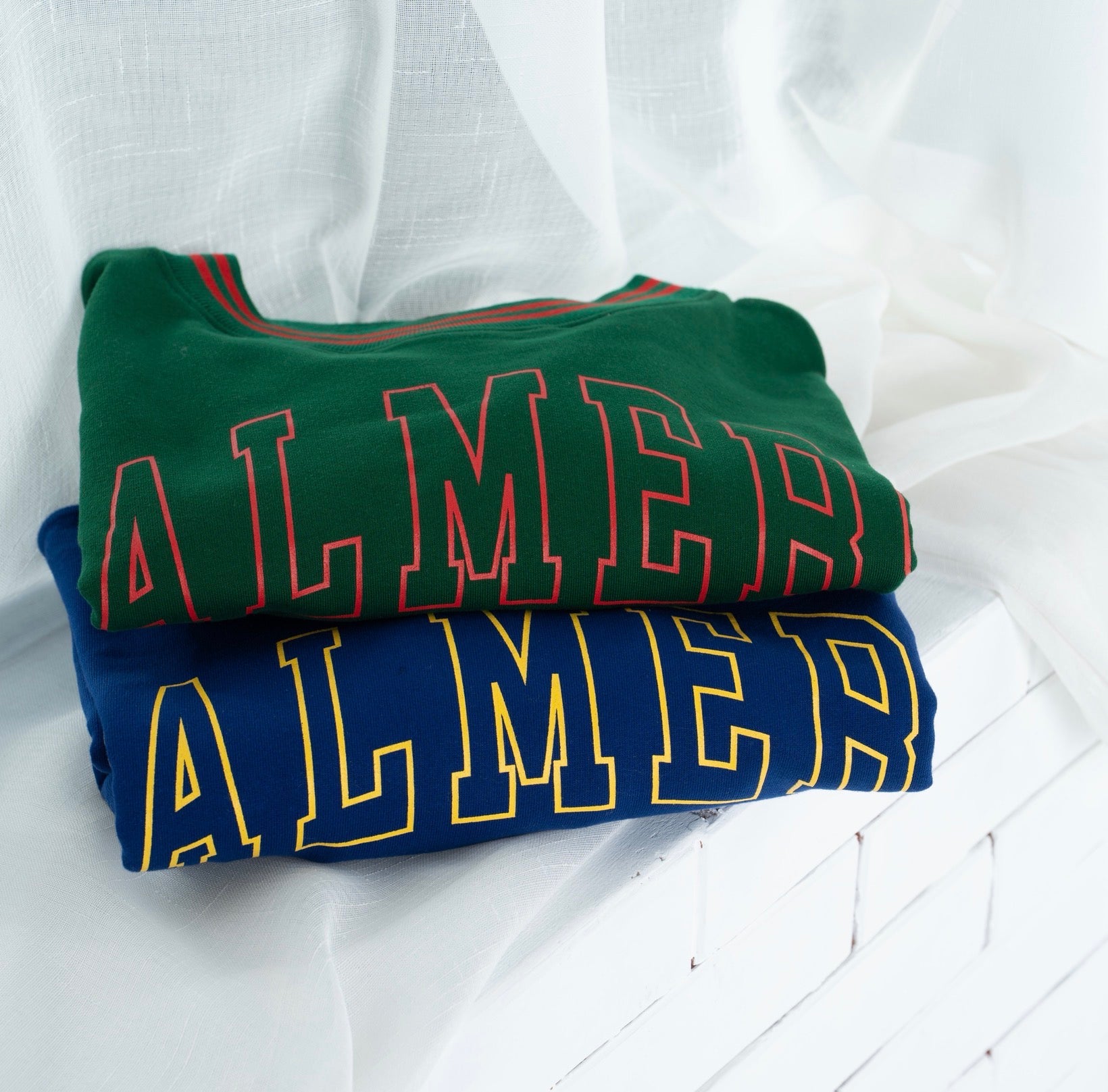 Refine your style with this custom created Varsity Crest ribbed crewneck in billiard green. Featuring Palmers boldly written in red, and a unique Palmers crest. This crew neck has red and green striped ribbing on the cuffs, collar, and hem. The sweatshirt is made from premium cotton fleece.